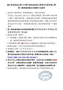 115學年度申請入學第二階段複試報名及繳費方式說明